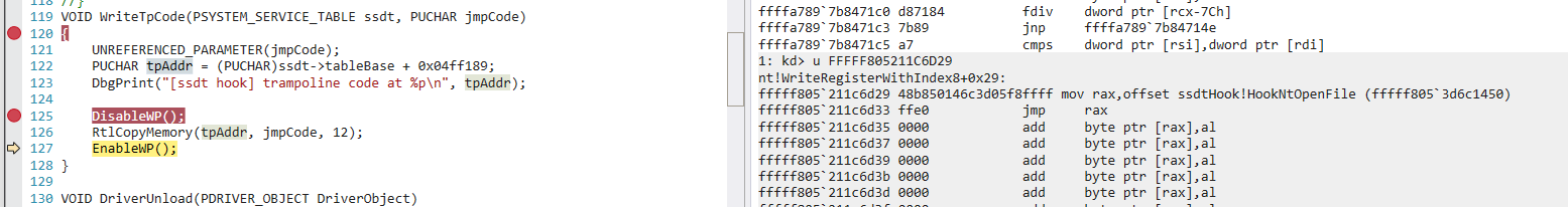 1 2 3 4 5 DbgPrint("Driver Loaded\n" ); DriverObject->DriverUnload = DriverUnload; DWORD64 dmsr = __readmsr(0xC0000082 ); DbgPrint("KiSystemCall64 at %p\n" , dmsr);